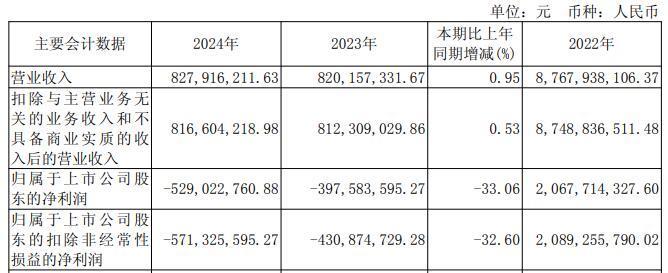 2024年,东方生物实现营业收入8.28亿元,同比增长0.95%;归属于上市公司股东的净利润-5.29亿元,上年同期为-3.98亿元;归属于上市公司股东的扣除非经常性损益的净利润-5.71亿元,上年同期为-4.31亿元;经营活动产生的现金流量净额为-3.48亿元,上年同期为-16.46亿元。